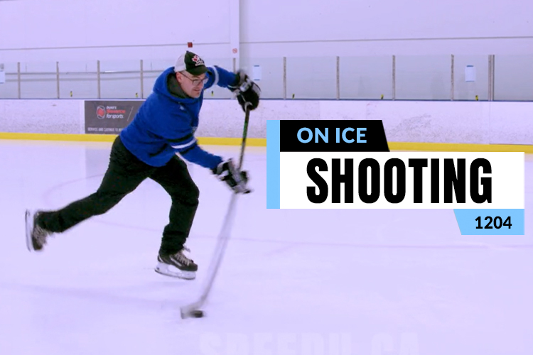 There are 3 main different types of releases when shooting after receiving a pass: The Catch and Shoot, The 2 Touch, and the 1 Touch (or 1 Timer). With the Catch and Shoot, there is a cradling of the puck, and it makes constant contact with the stick as you are gliding on the open hip foot. This type of release is commonly used when you have some time and space, and you choose to take an extra second to make sure you are accurate with the shot. It is also used when it is smart to hold the puck for a bit before you shoot, allowing you to get even closer to the net, or into a better position to shoot. With the 2 Touch Release, the puck often either bounces off your stick, or comes in your feet or to your backhand. With this release, the first touch stops the puck, or controls the pass, and then on the next touch of the stick, you are shooting the puck. This release is often quick and deceptive as goalies are expecting some stickhandling to gain control before shooting. You can think of the 2 Touch as setting your own self up for a 1 timer. With the 1 Timer, you make immediate contact with the puck without controlling it at all. 1 Timers are most often used when you have no time at all, or when the goalie is slow getting across but you don’t have much time to take advantage of the open net. In these situations, accuracy is less important than just getting it on net before the goalie can react. Specific to the “Open Hip Shot,” remember to point your front leg toe to the net or to the side (Rightys to the left, Leftys to the right) for this type of release.